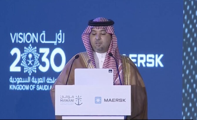 沙特港务局主席奥马尔·哈里里(Omar Hariri)在吉达伊斯兰港(Jeddah Islamic Port)新物流区落成典礼上讲话