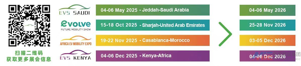 EVS系列展由中东国际展览集团MIE精心打造,是助力中国新能源企业开拓中东非市场的专业平台。近年来,中东非地区新能源发展势头迅猛,EVS系列展精准把握这一机遇,旗下涵盖沙特新能源车展、中东(沙迦)新能源车展、摩洛哥电动车与储能展和肯尼亚新能源车展,全面覆盖中东非热门市场。