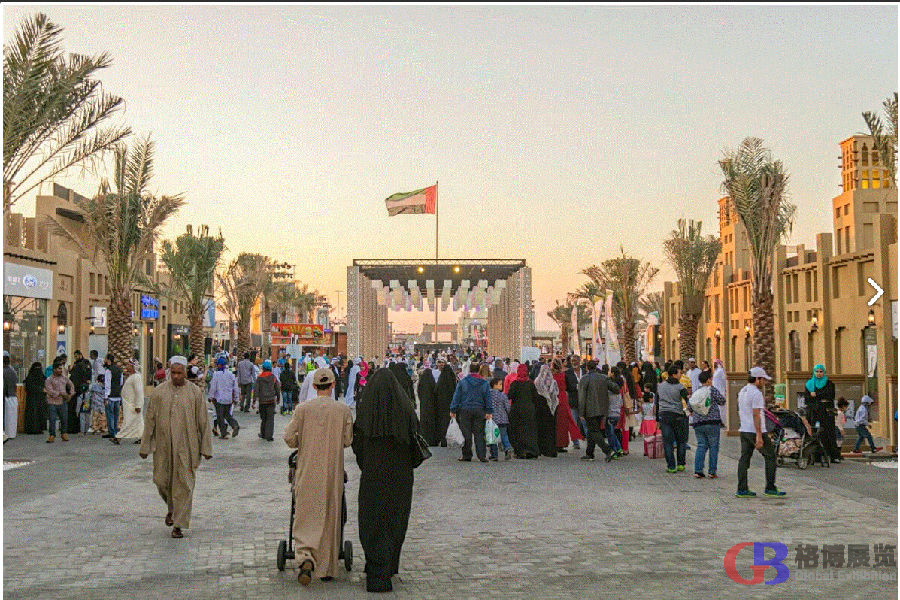 在谢赫扎耶德文化遗产节的举办地——Al Wathba 地区的文化遗产城内(离市中心50公里),不仅展示着阿联酋的民族文化和风土人情,参观者还能观赏到各个时期的象征性建筑。如阿联酋社会人文档案、历史照片、珍贵文物、中世纪古城堡、阿拉伯式风塔房、沿海居民的椰枣木制房屋以及当地具有历史价值的清真寺等。现场中东观众爆满,夜夜音乐喷泉,烟花灿烂,持续到午夜12点结束时,仍有大量观众游兴未尽,留连忘返。