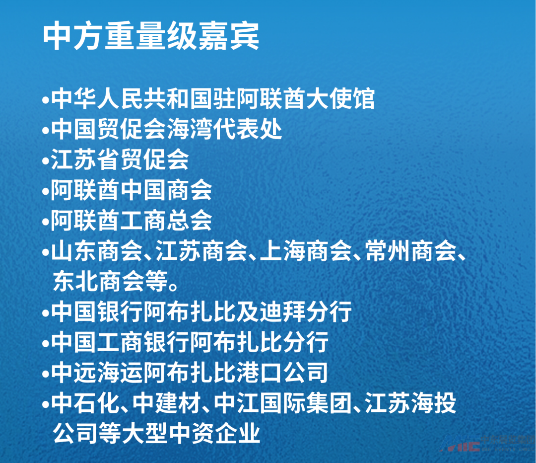 阿联酋阿布扎比王室、阿联酋经济部官员、中国驻阿联酋阿布扎比大使馆等近70位重量级嘉宾将参与此次论坛。
